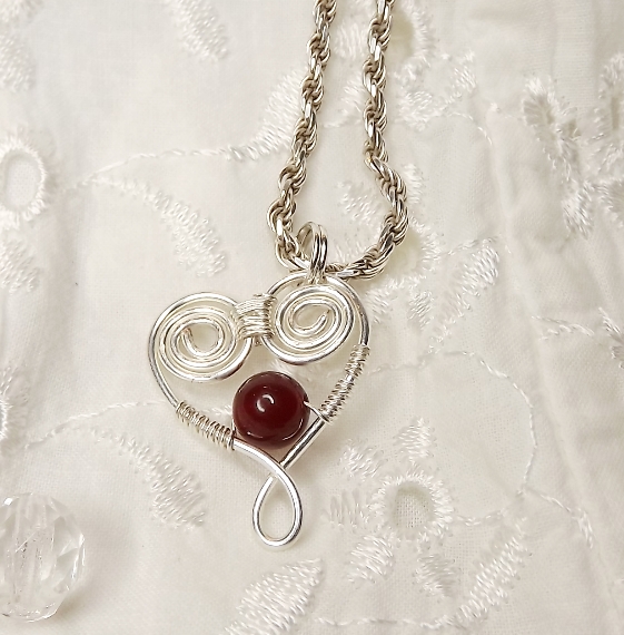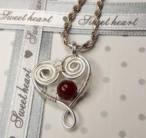 Ezt a kis medált ezüstözött dróttal készítettem és belefűztem egy pici 6mm-es karneol követ.